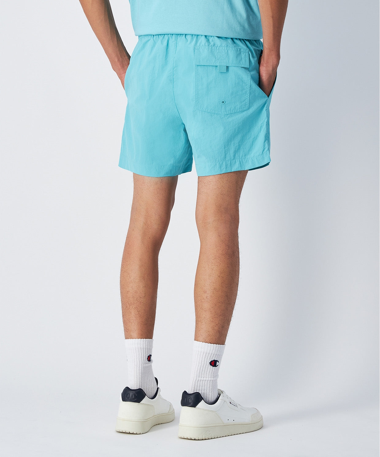 Champion Erkek Mayo Detayları-Short Fit: Uyluk uzunluğunda kesilmiş kısa bir uzunluk. |