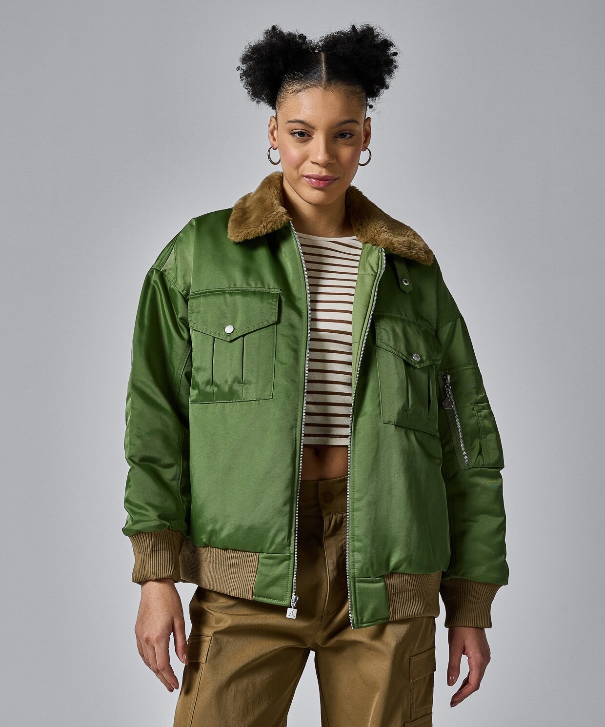 Jordan Renegade Kadın Ceket DetaylarıBu şık Jordan Renegade Kadın Ceketi, zarif detaylarıyla stiline modern bir dokunuş katıyor. İşlemeli Jumpman logosuna sahip kol cebi, metal Jordan logolu çıtçıtlar ve büzgülü kollardaki ayrıntılar, cekete şıklık katarken, suni kürk astarlı yaka rüzgarlı havalarda ekstra sıcaklık sağlar. -Geniş ön göğüs cepleri: Hem stiline boyut katar hem de kullanışlı saklama alanı sunar. |